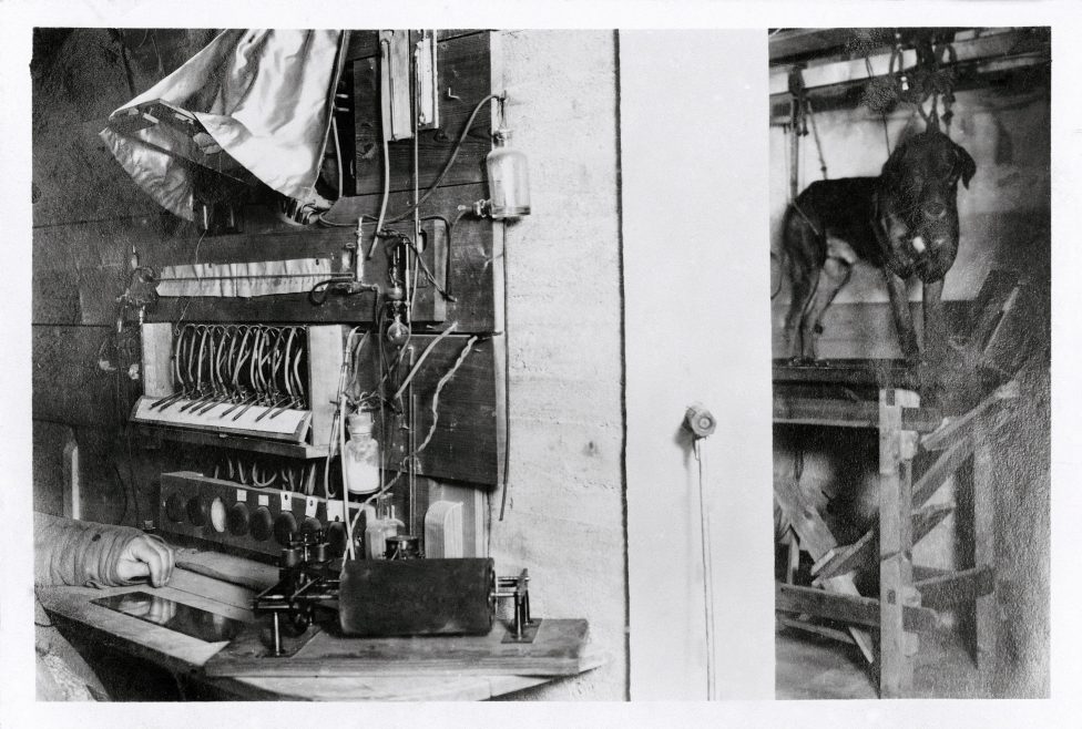 In the summer of 1922, alongside his assistant and lover Maria Petrova, Pavlov conducted a series of experiments with the intention of purposefully ‘breaking’ two dogs – Postrel and Milord. This they did by subjecting the dogs to increasingly powerful electric shocks from which the dogs could not escape. Over three years of trials, the shocks were paired with food, or other already established stimuli, supposedly to create a ‘clash’ in the dogs’ nervous system. Designed to support Pavlov and Petrova’s theory of psychological breakdown, the results of these experiments were later disregarded.
